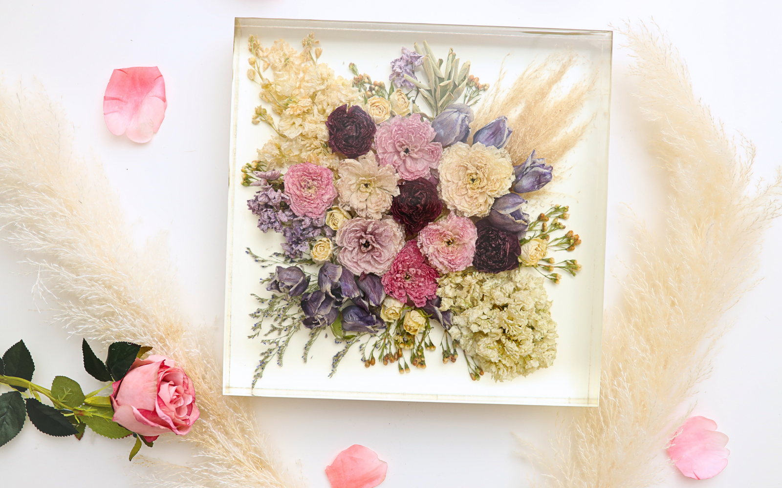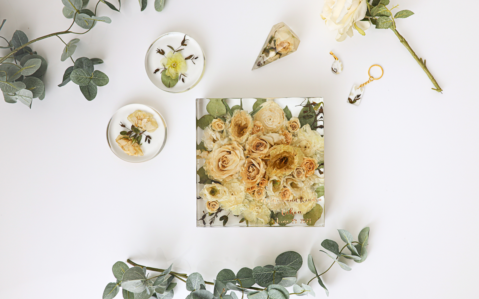 This collection features Jeanna Jane Chua’s resin floral preservation work—capturing meaningful blooms in lasting, sculptural form. Each piece is carefully crafted to preserve the beauty and sentiment of special occasions, transforming fresh flowers into timeless keepsakes.